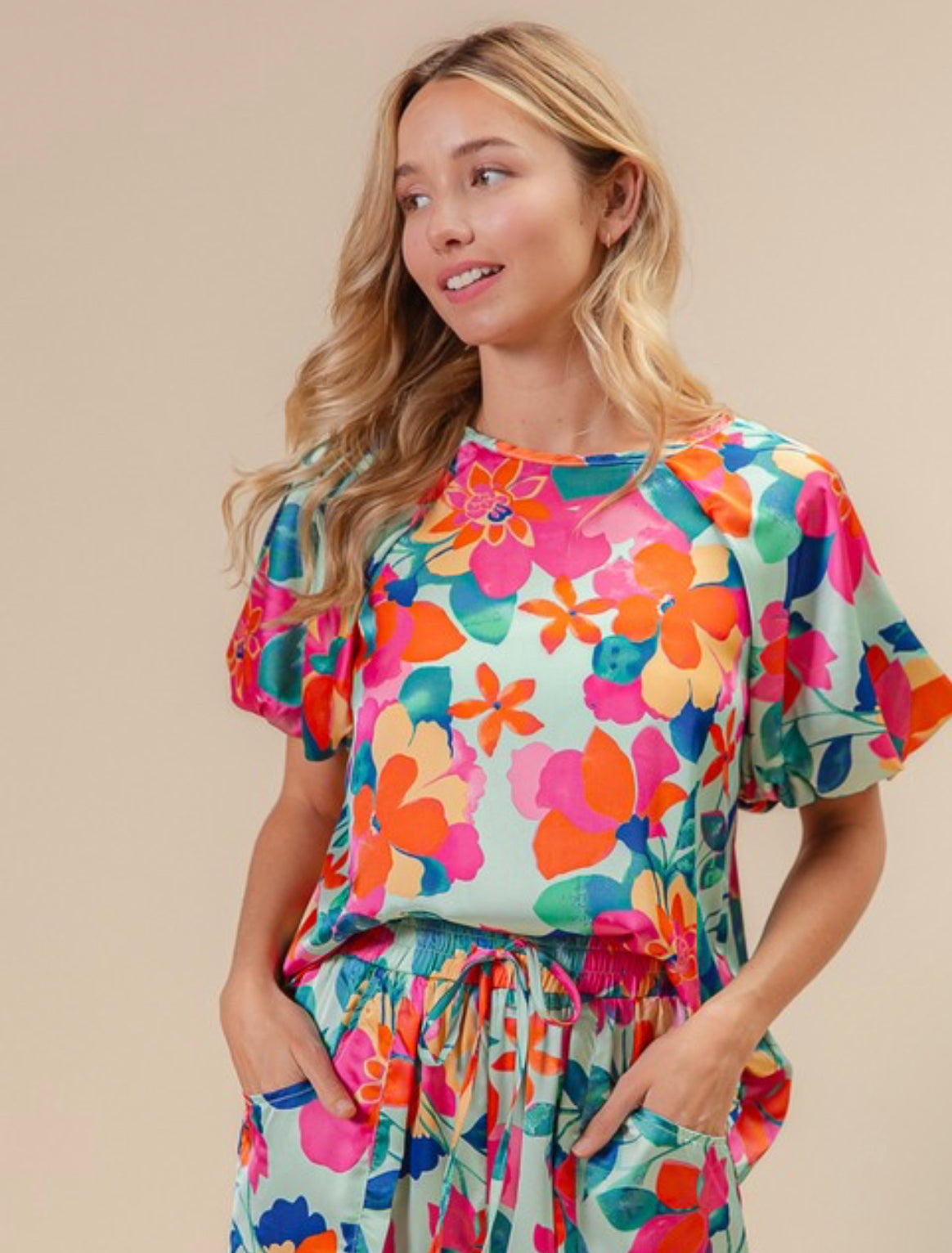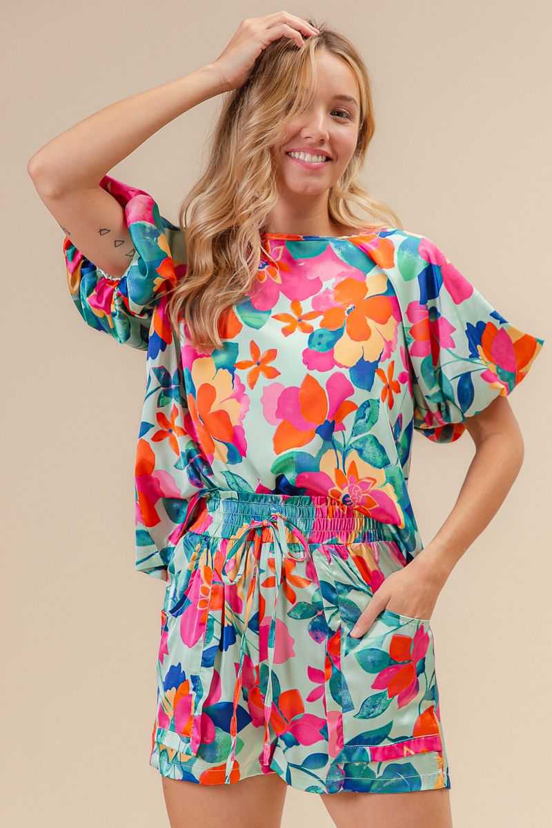 Silky satin puff sleeve blouse. Runs true to size.
